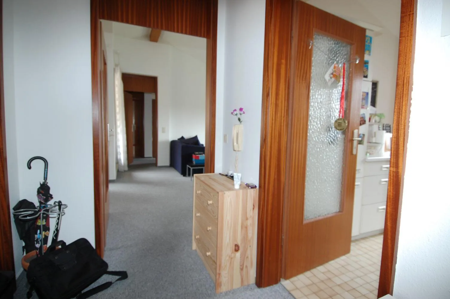 Die 2 Zimmer-Wohnung ist derzeit mit Teppich ausgestattet. Der Teppich wird noch entfernt und es wird Laminat verlegt.