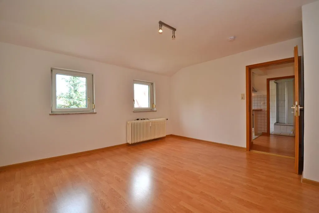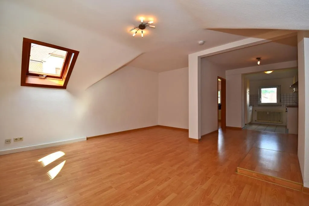 Diese charmante 2-Zimmer-Dachgeschoss-Etagen-Wohnung mit Flair für einen Single befindet sich im 2. Obergeschoss eines 3-Familien-Reihenmittelhauses.