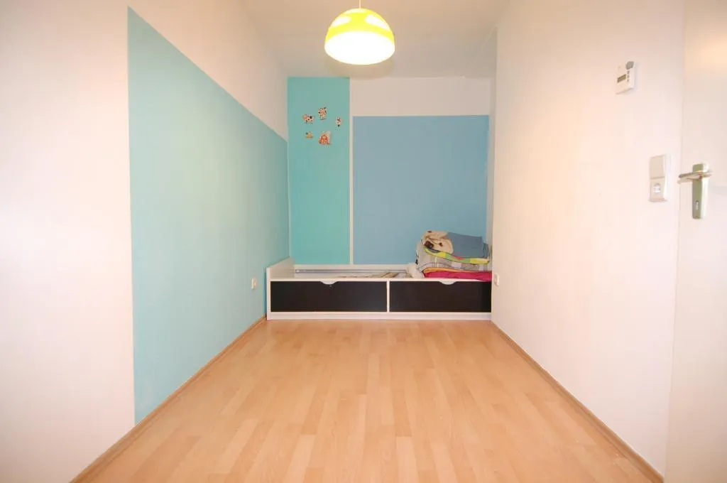 Die Zimmer, der Flur sowie die Küche sind mit einem Laminatboden, welcher 2006 neu verlegt wurde sowie gestrichenem Putz ausgestattet.