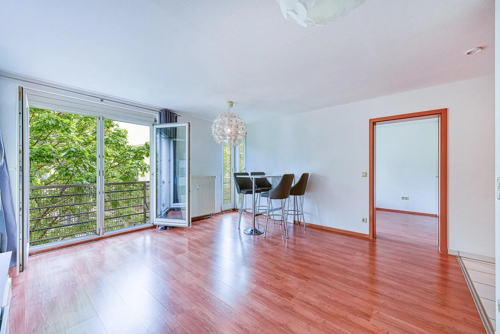 Die Küche ist offen. Die Einbauküche mit Waschmaschine sowie weitere Möbel können eventuell bei Bedarf vom aktuellen Mieter übernommen werden.