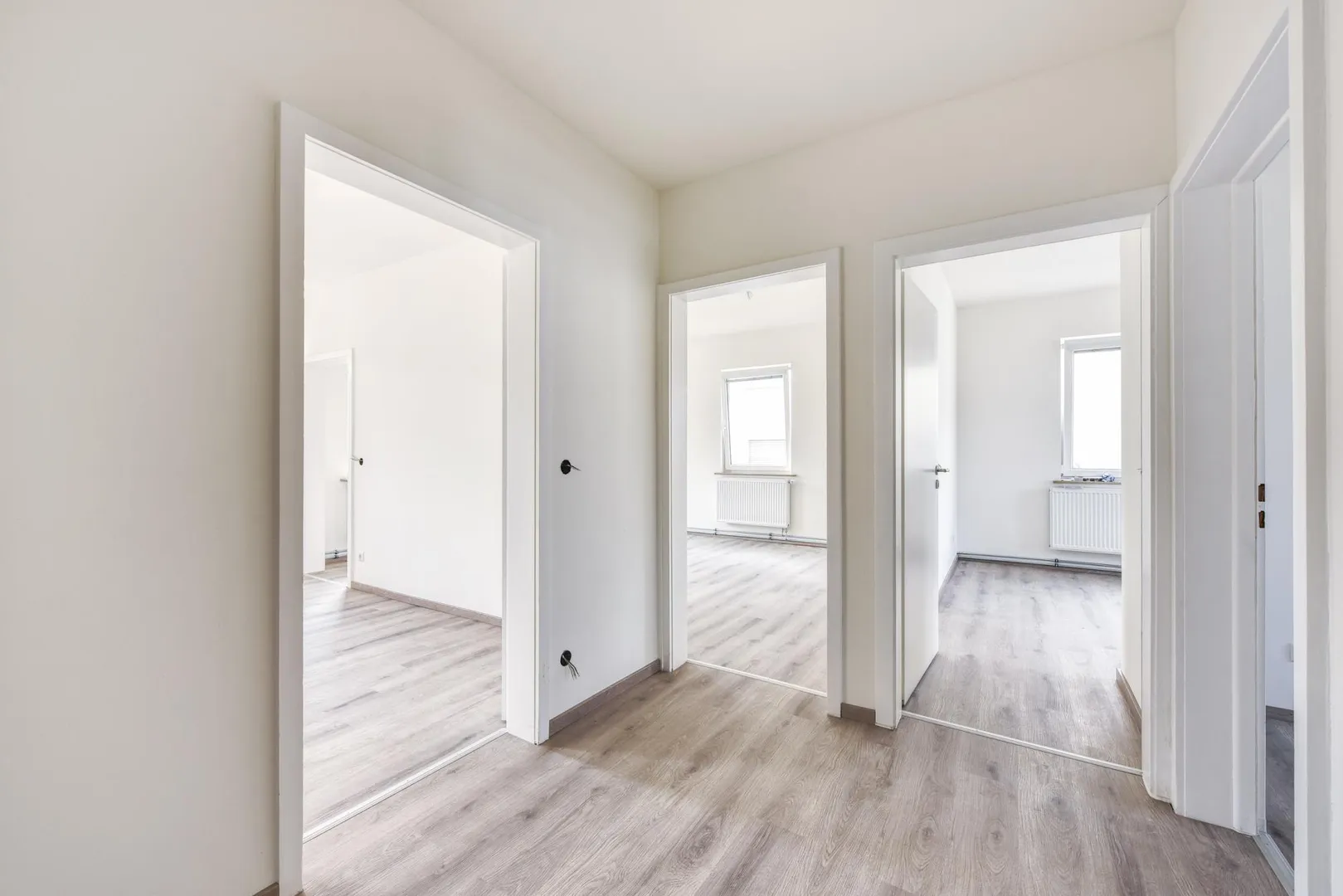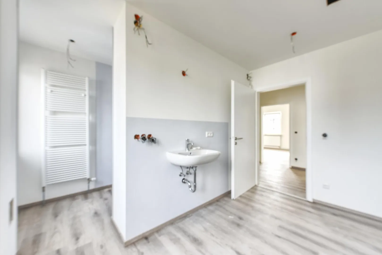 Die Böden sind mit Vinyl-Design-Böden ausgestattet. Die Wände sind als Glattstrich verputzt.