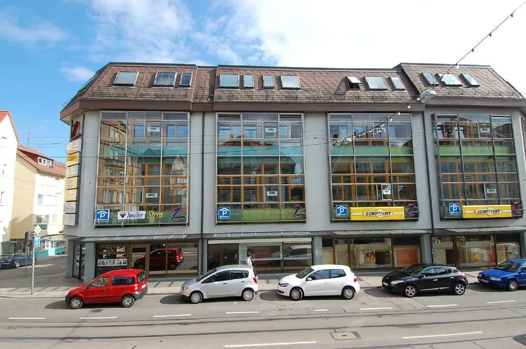 Im Erdgeschoss befinden sich diverse Läden und ein Sonnenstudio.