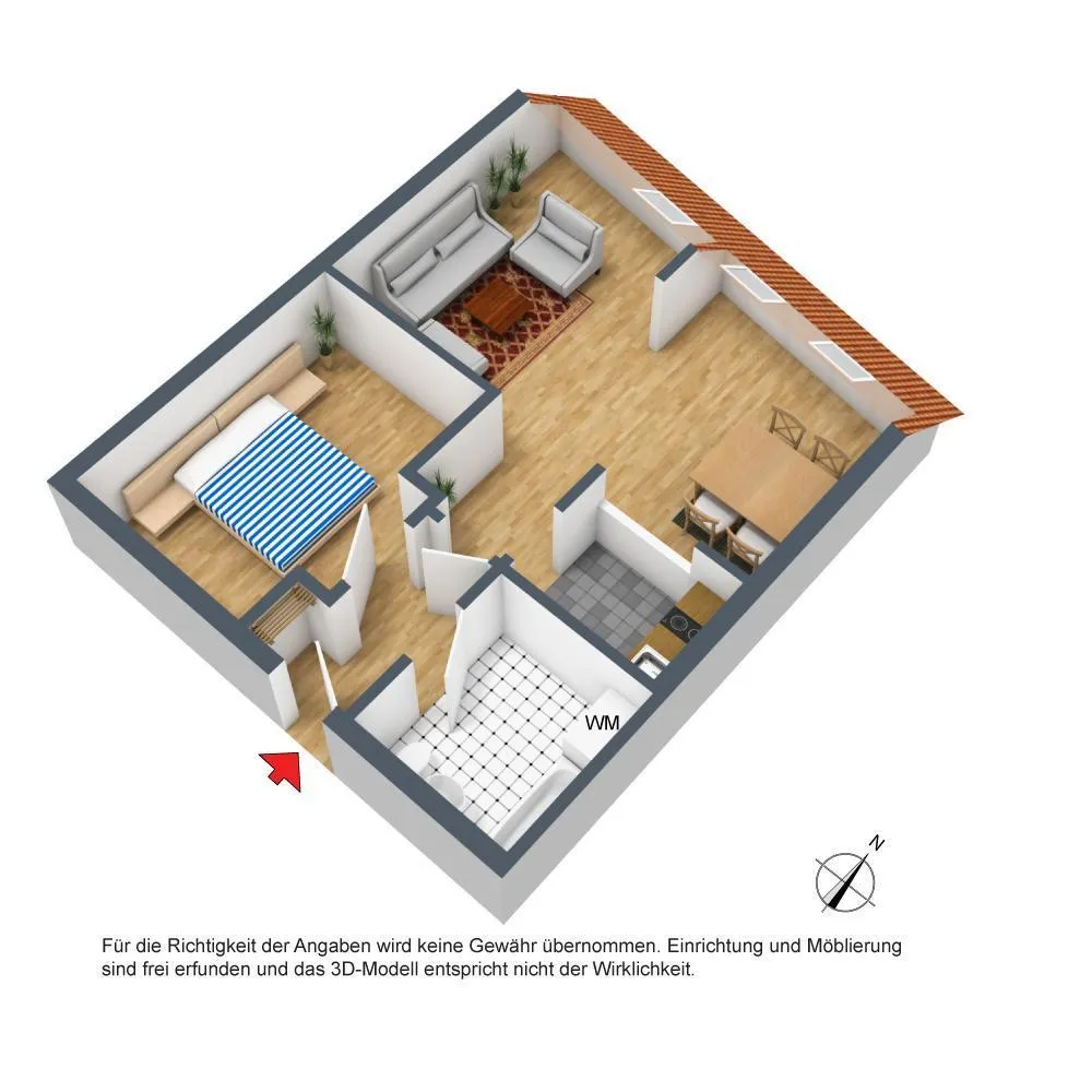 Trotz sorgfältiger Prüfung der im Exposé gemachten Angaben, können wir für die Richtigkeit und Vollständigkeit der Angaben keine Haftung übernehmen. Bitte beachten Sie, dass die Immobilie auf den Bildern größer wirkt als sie in der Realität ist.
