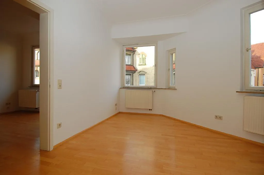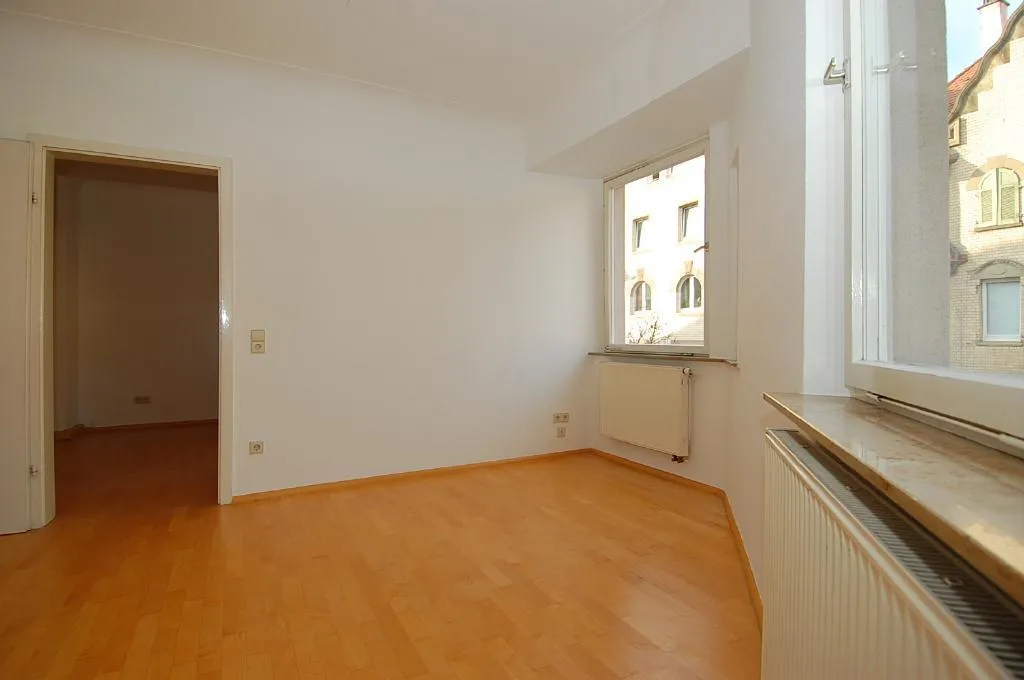 In den Zimmer ist Parkett verlegt. Die Wände sind mit Raufaser tapeziert und frisch gestrichen.