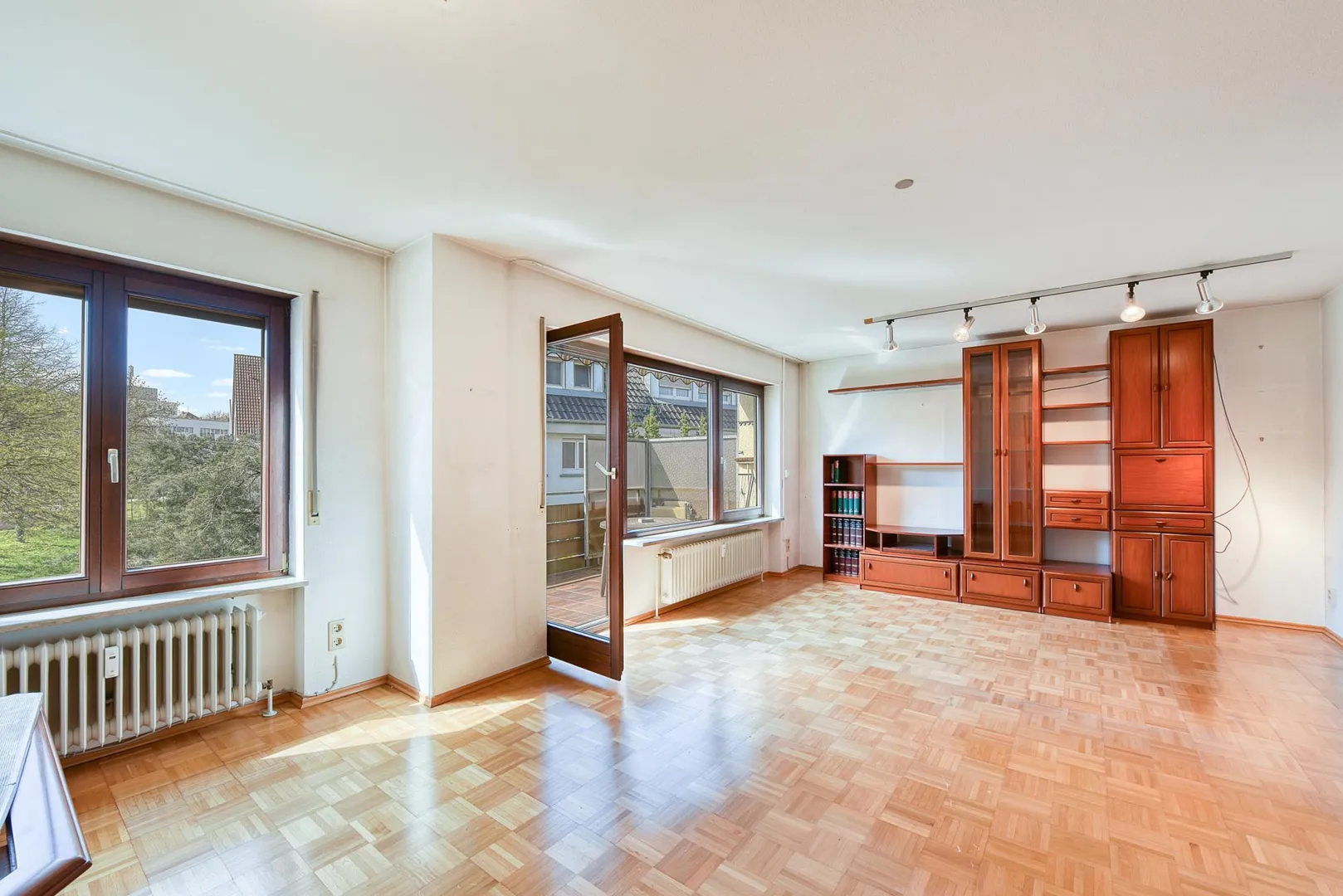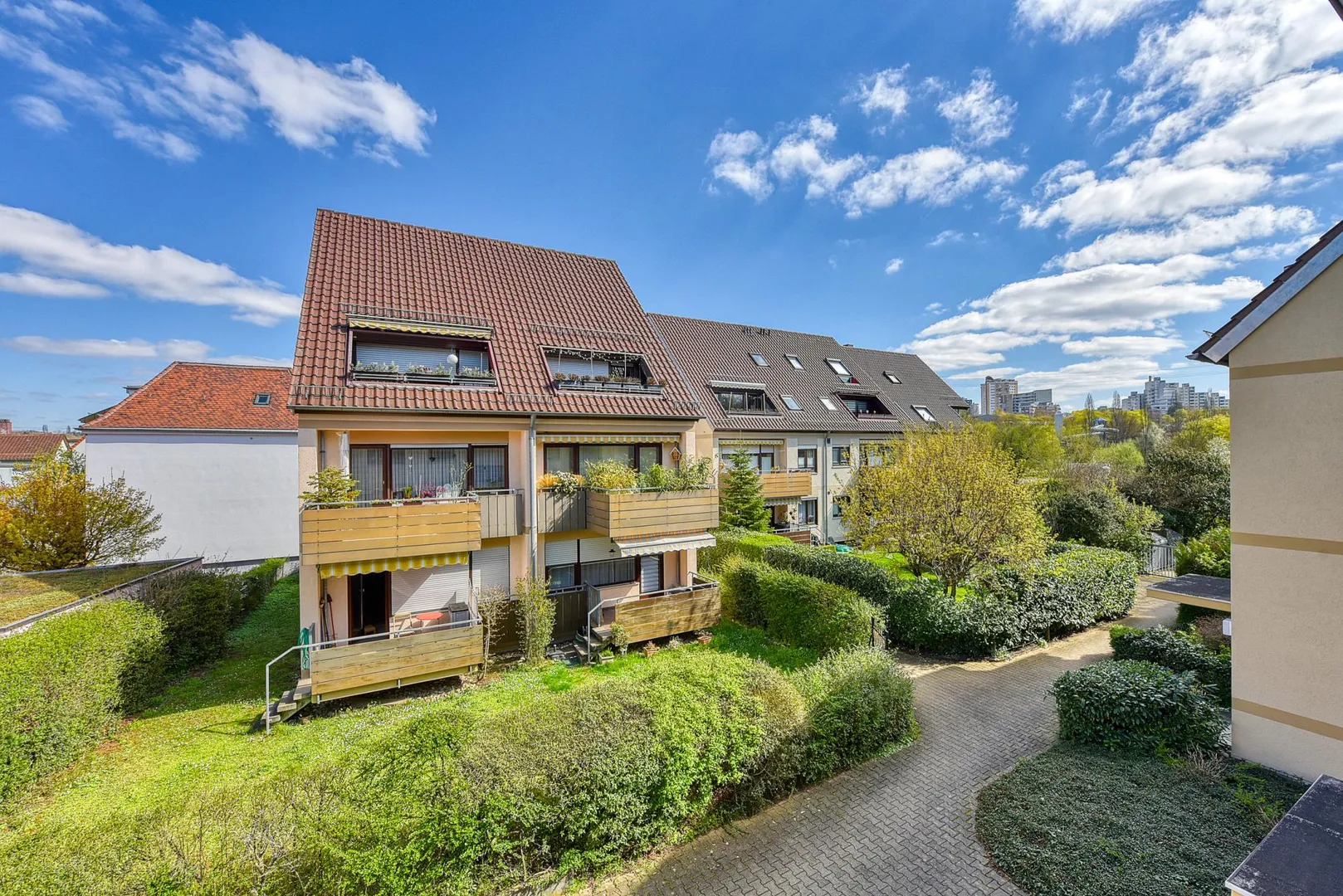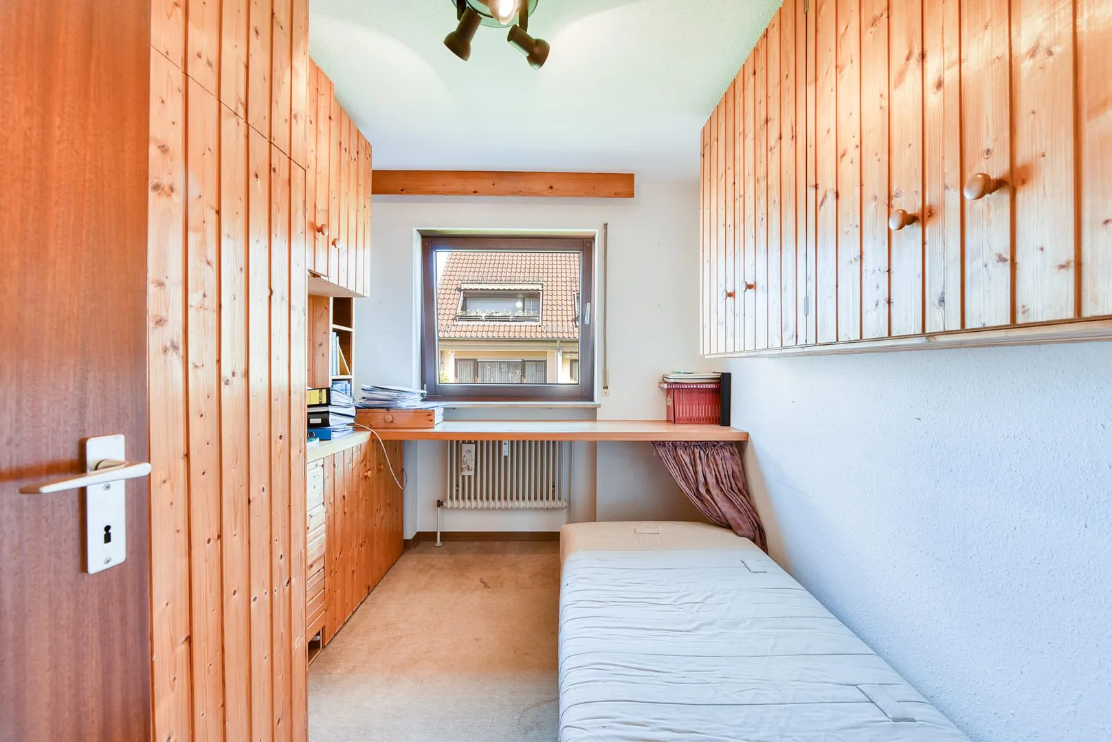 Diese bequem und ruhig gelegene 3-Zimmer-Wohnung mit Süd-Balkon befindet sich im 1. Obergeschoss einer 6-Familien-Doppelhaushälfte.