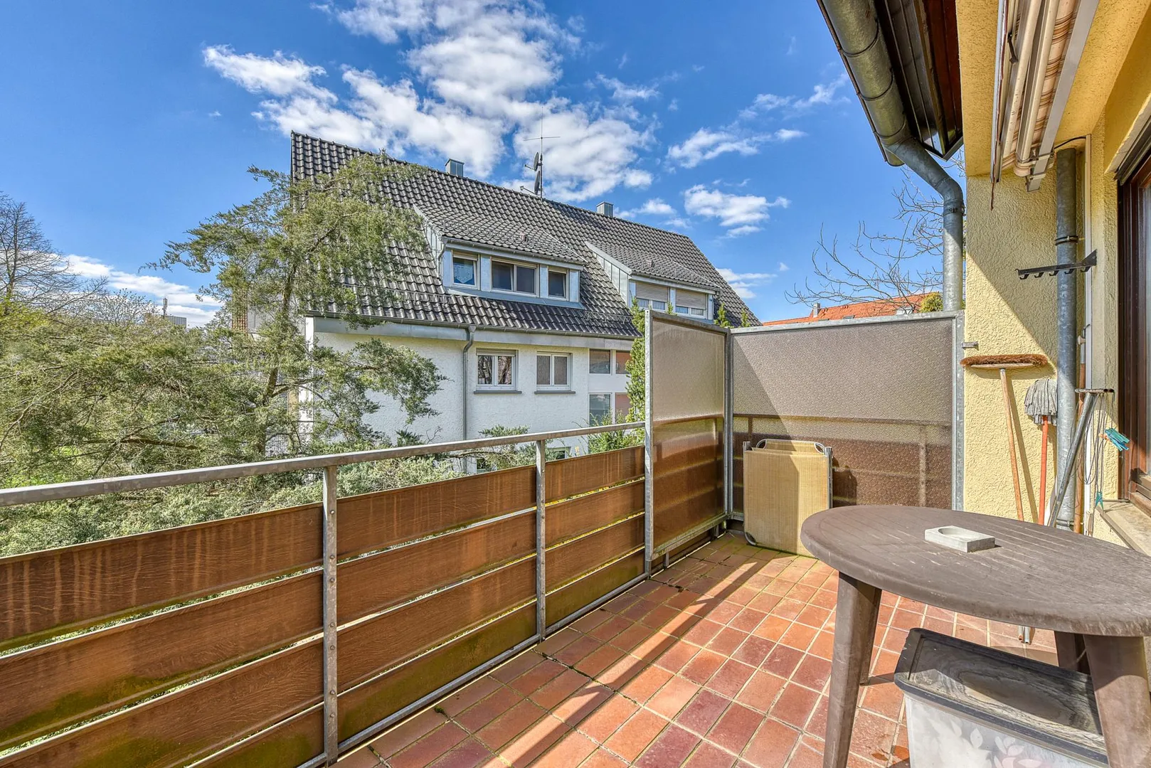 Der ca. 8,5 m² große und teilüberdachte Süd-Balkon verfügt über eine elektrische Markise.