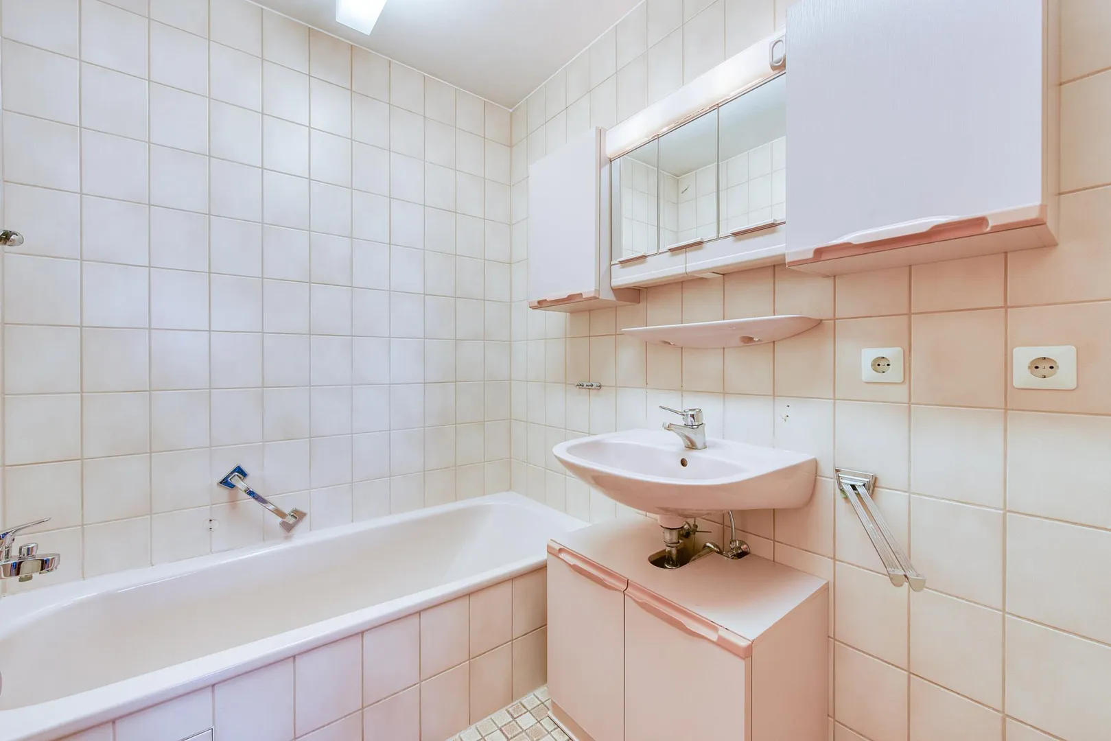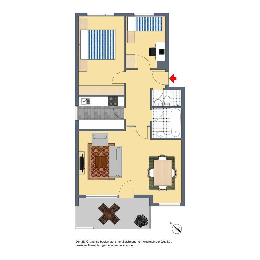 Der Grundriss ist gut: alle Räume sind direkt vom Flur begehbar. Das größere Badezimmer ist ausgestattet mit einer Badewanne. Das kleinere Badezimmer ist ausgestattet mit einer Dusche sowie einem WC.