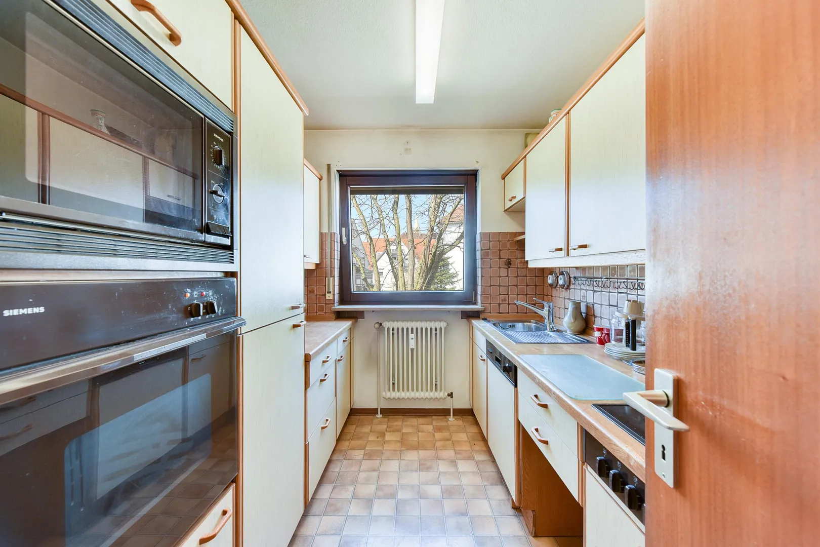 Der Kelterplatz, das Rathaus, der Wochenmarkt, das Hallenschwimmbad, Geschäfte, Gastronomien, Ärzte und ÖPNV sind bequem zu Fuß erreichbar.