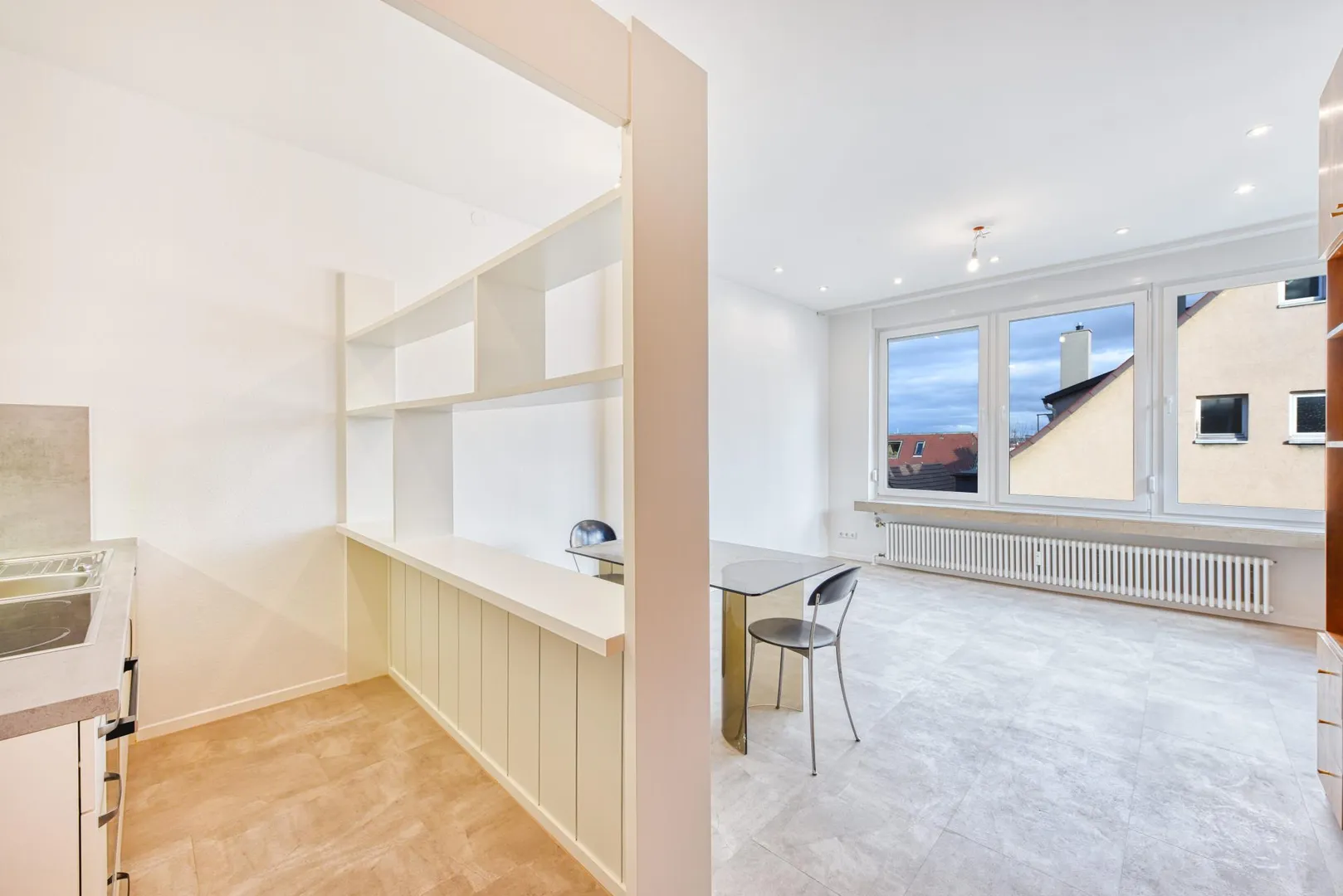 Diese frisch modernisierte und teilmöblierte 1-Zimmer-Altbau-Wohnung befindet sich im 2. Obergeschoss eines freistehenden 7-Familien-Wohn- und Geschäftshauses.