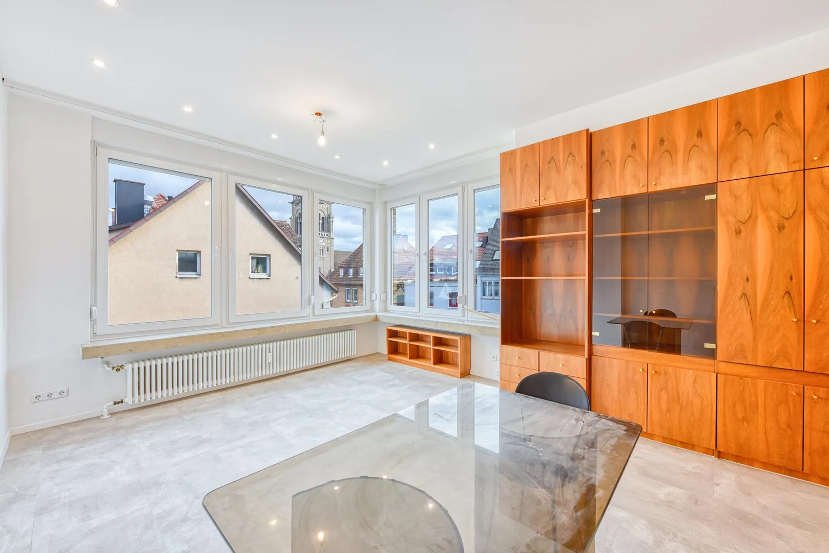 Die Wohnung verfügt über Raumhöhen von ca. 2,85 Meter. Die Decken sind abgehängt und mit Einbaustrahlern ausgestattet. Das Zimmer ist hell und nach Osten sowie Süden ausgerichtet.
