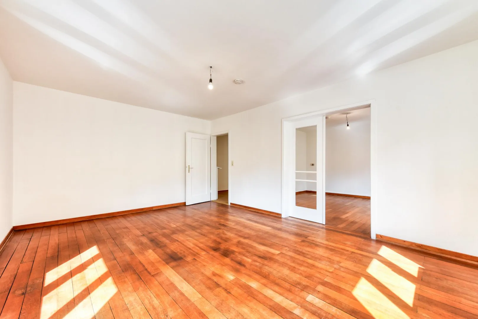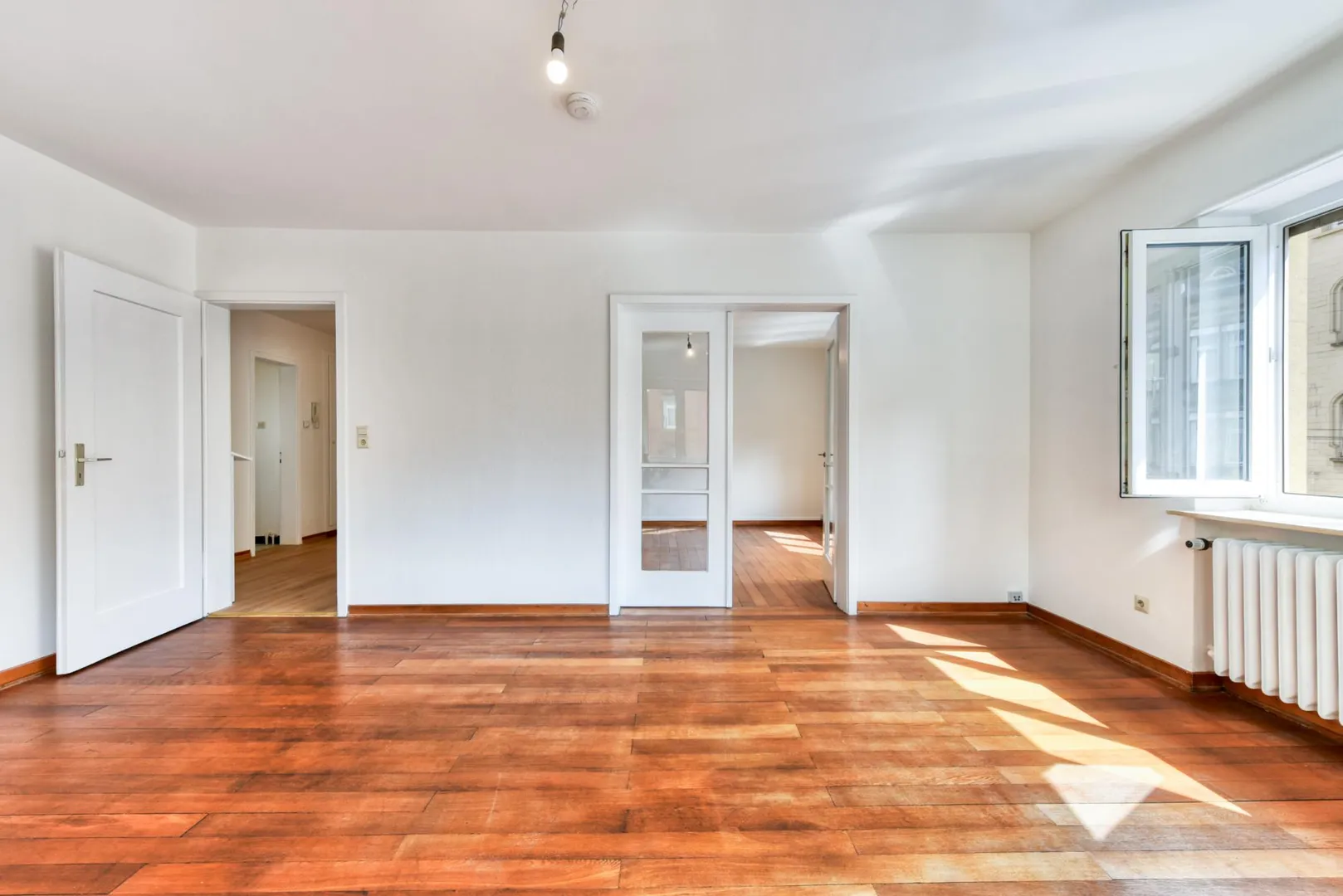 Diese zentral gelegene, helle und renovierte 3-Zimmer-Wohnung, für ein Paar oder eine Einzelperson, befindet sich im 2. Obergeschoss eines 10-Familien-Reihenmittelhauses.