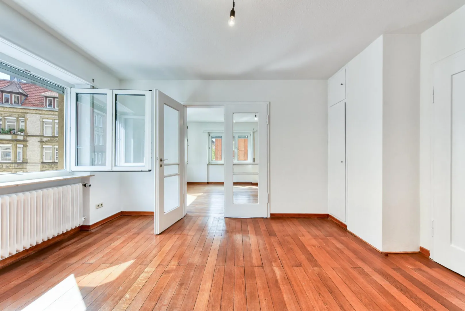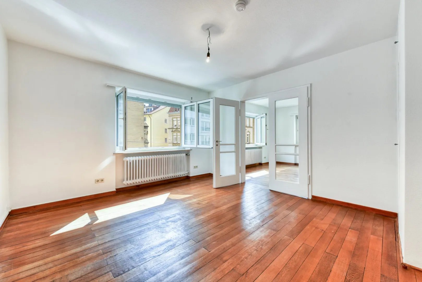 Die Wohnung verfügt über große Fensterflächen sowie 2,60 Meter Raumhöhen und ist deshalb hell.