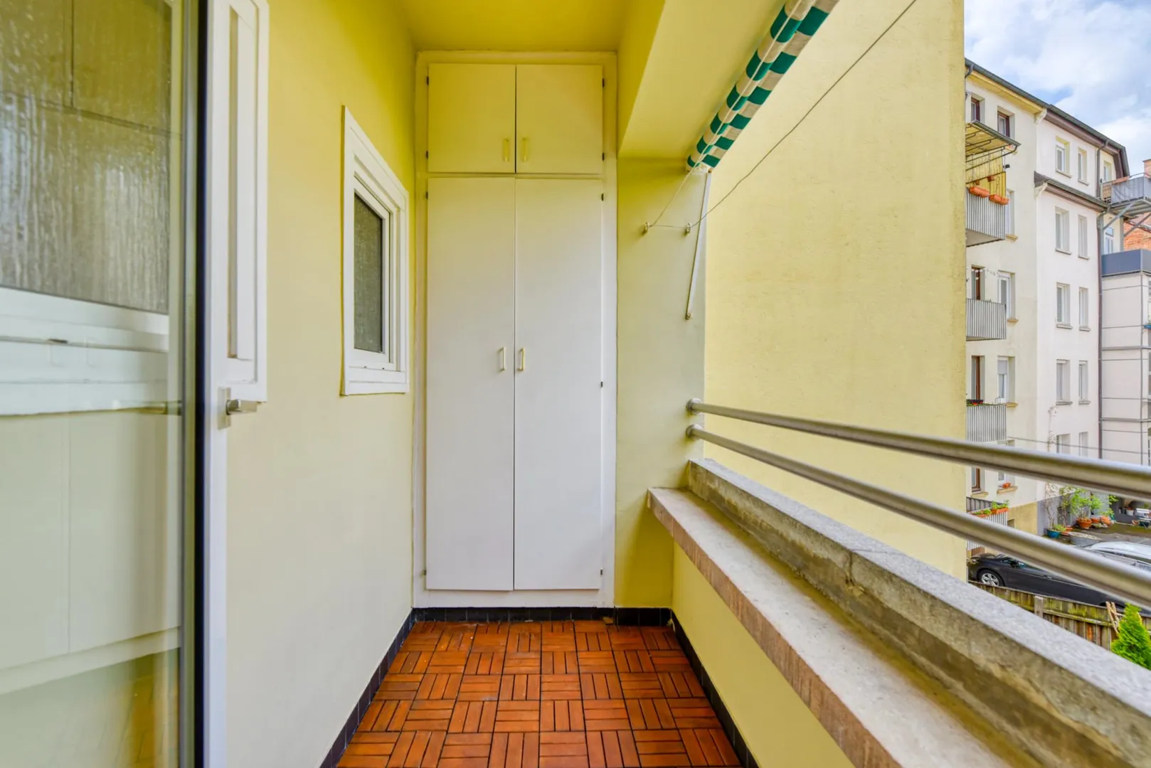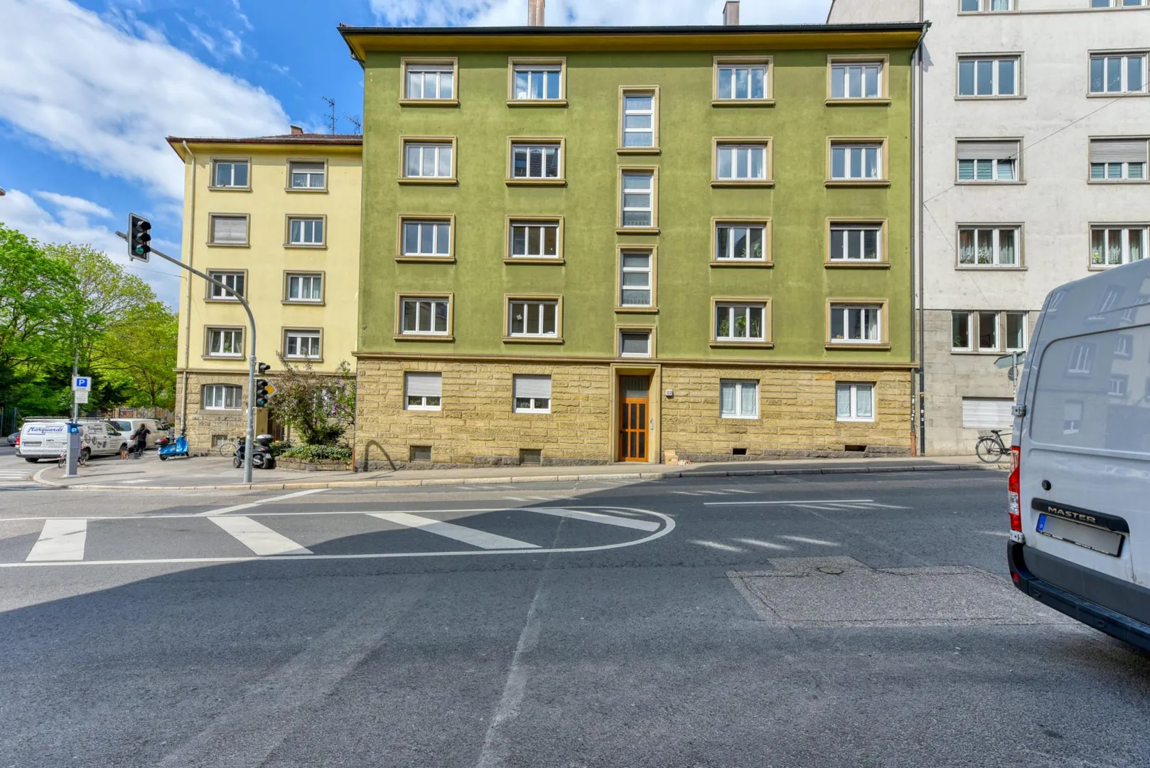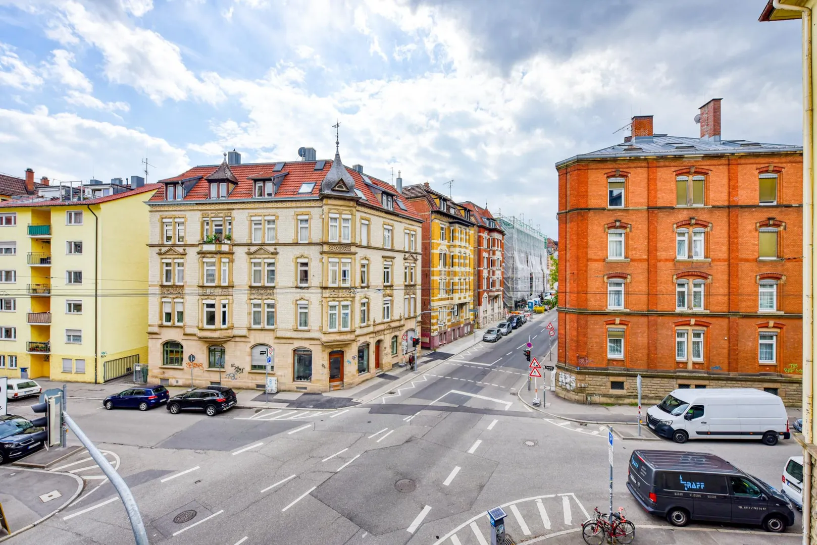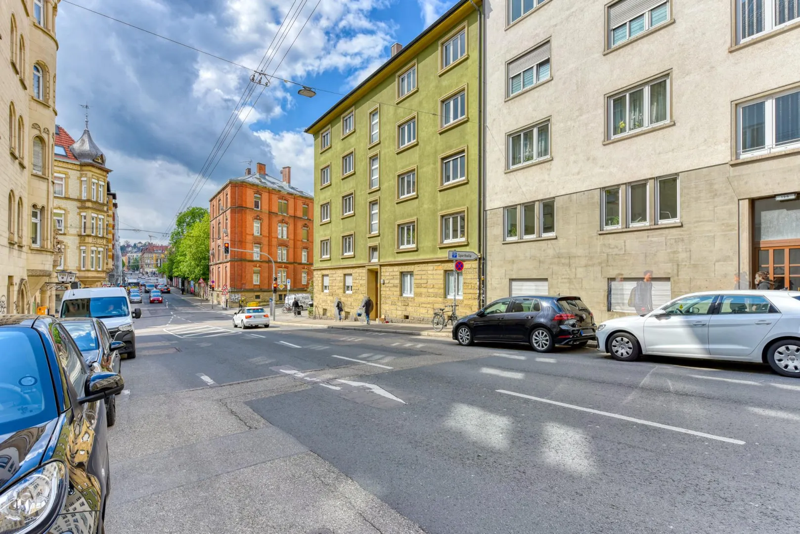 Die Wohnung befindet sich an einer Hauptstraße zwischen Hölderlinplatz und S-Bahn Haltestelle "Schwabstraße".