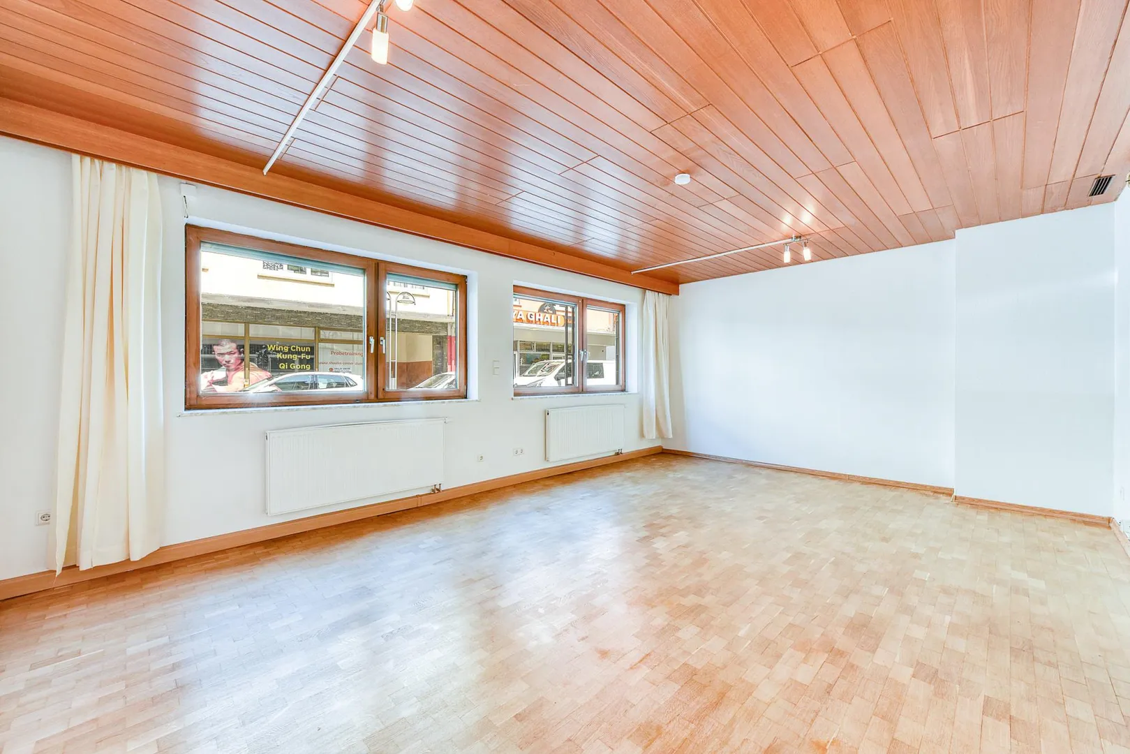 Die Decken im Flur sowie im Wohnzimmer sind mit braunen Holzdecken ausgestattet. Die Decken im Schlafzimmer sowie in der Küche sind mit Styropor-Decken ausgestattet.