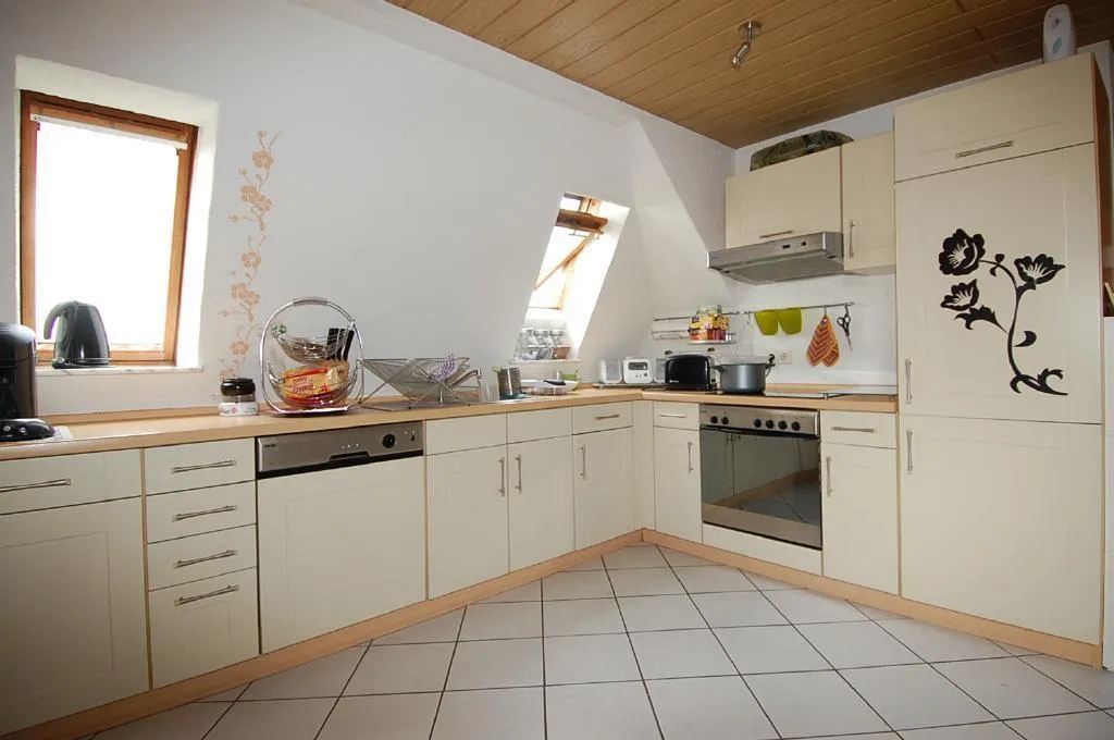 Die Einbauküche kann von den ehemaligen Mietern für 1.000 EUR (VB) übernommen werden. Sie ist aus dem Jahr 2004 und mit Cerankochfeld und Backofen, Kühl-/Gefrierschrank, Geschirrspüler, Dunstabzug sowie gepflegten Unterschränken ausgestattet.
