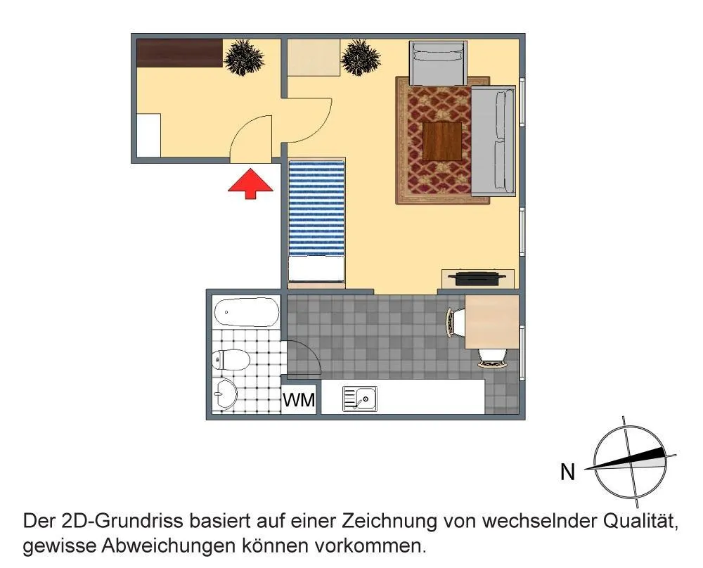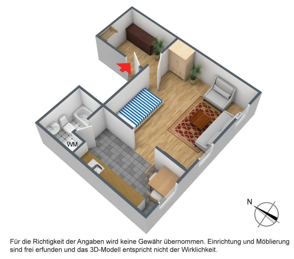 Bitte beachten Sie, dass die Wohnung auf den Bildern größer wirkt als sie eigentlich ist. Die Bilder sollen Ihnen zur Orientierung dienen. Grundrisse und Flächen sind dem Exposé anbei.