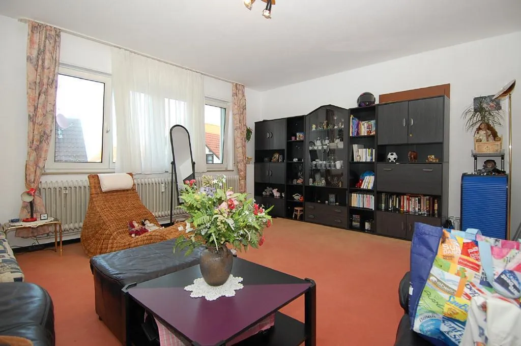 Zur Wohnung gehören ein Abstellraum im Untergeschoss sowie ein Kfz-Außenstellplatz neben dem Haus.