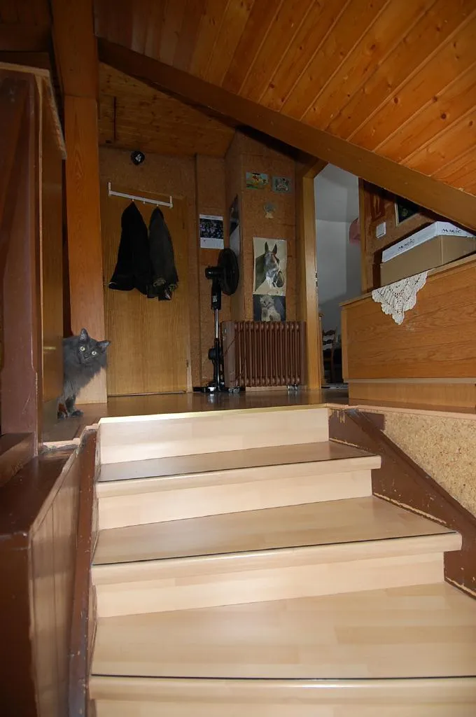 Der Aufgang zur zweiten Etage erfolgt über eine Holztreppe (Einbau 2005).