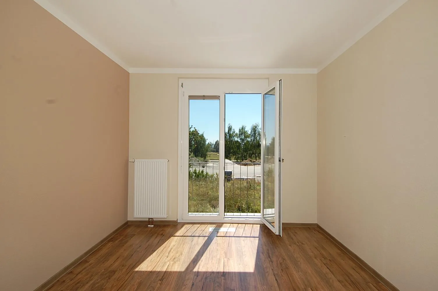 Das freie Zimmer ist mit Laminatboden und Raufasertapeten ausgestattet und hat eine Größe von 12,4 m².