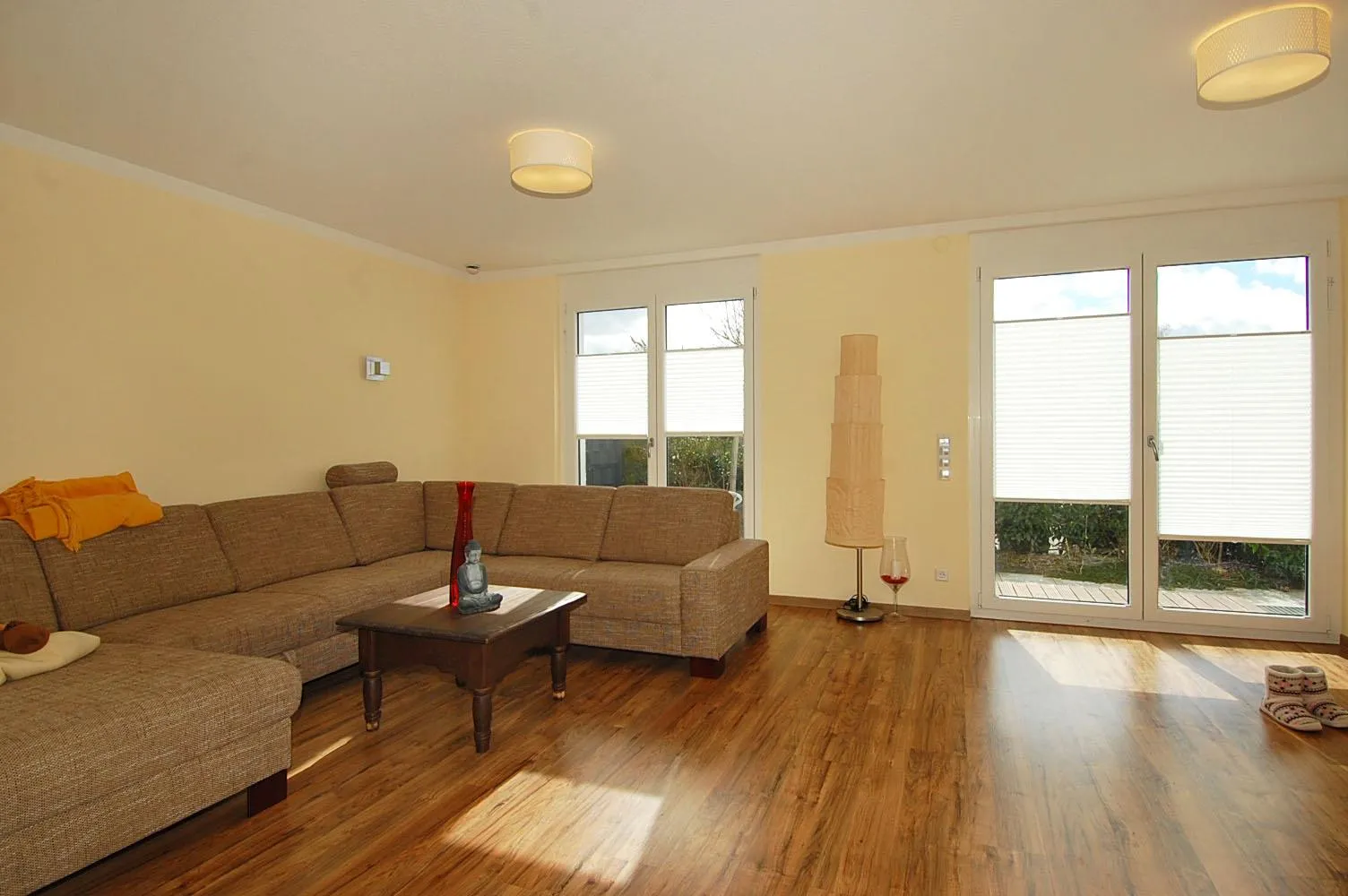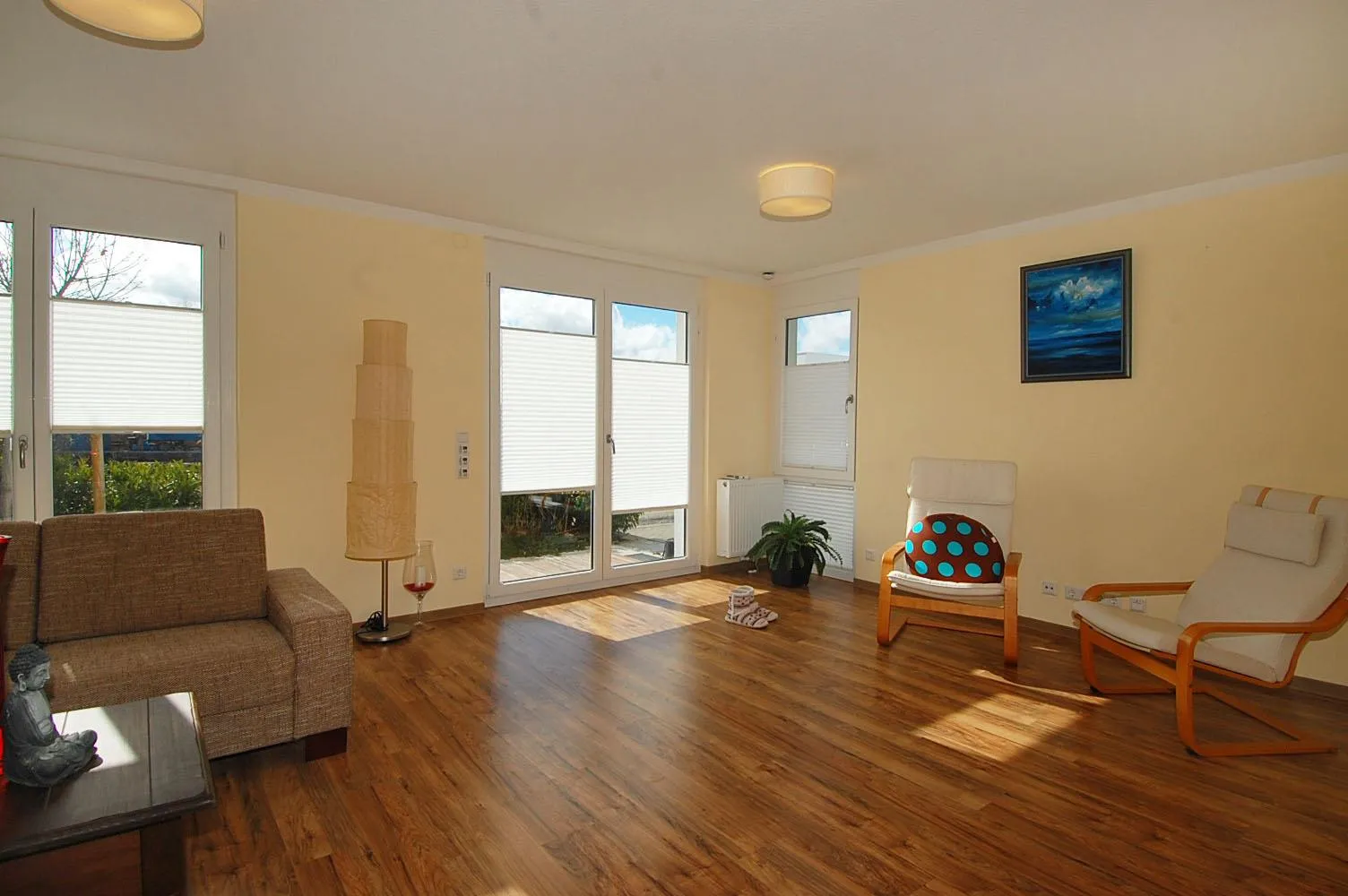 Hier befindet sich der große, offene und sonnige Wohnbereich mit direkt anschließender Süd-Terrasse.