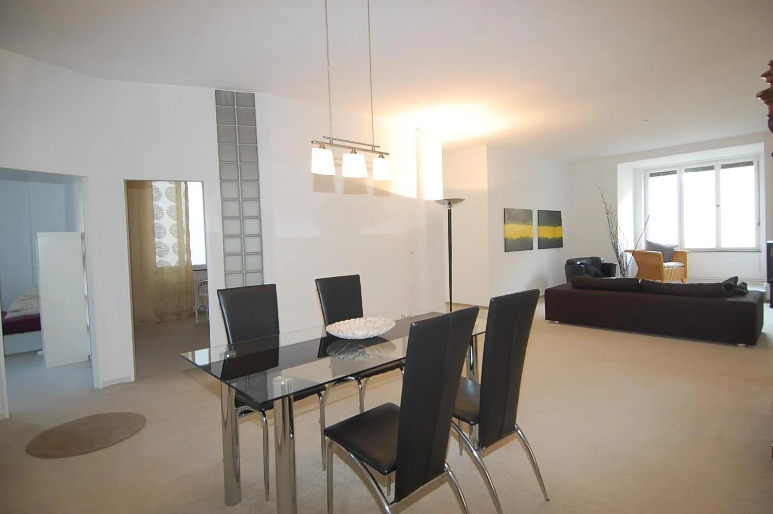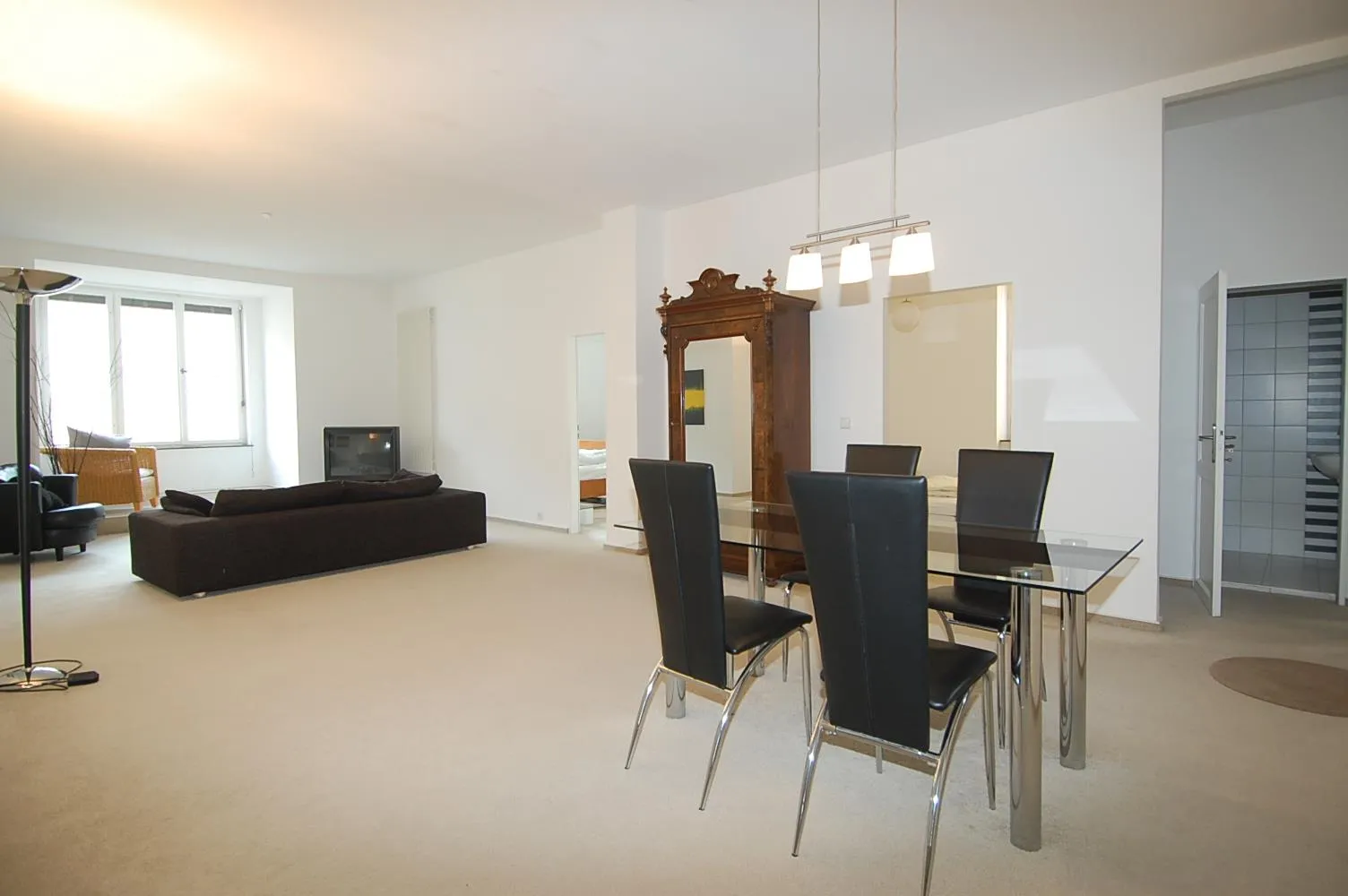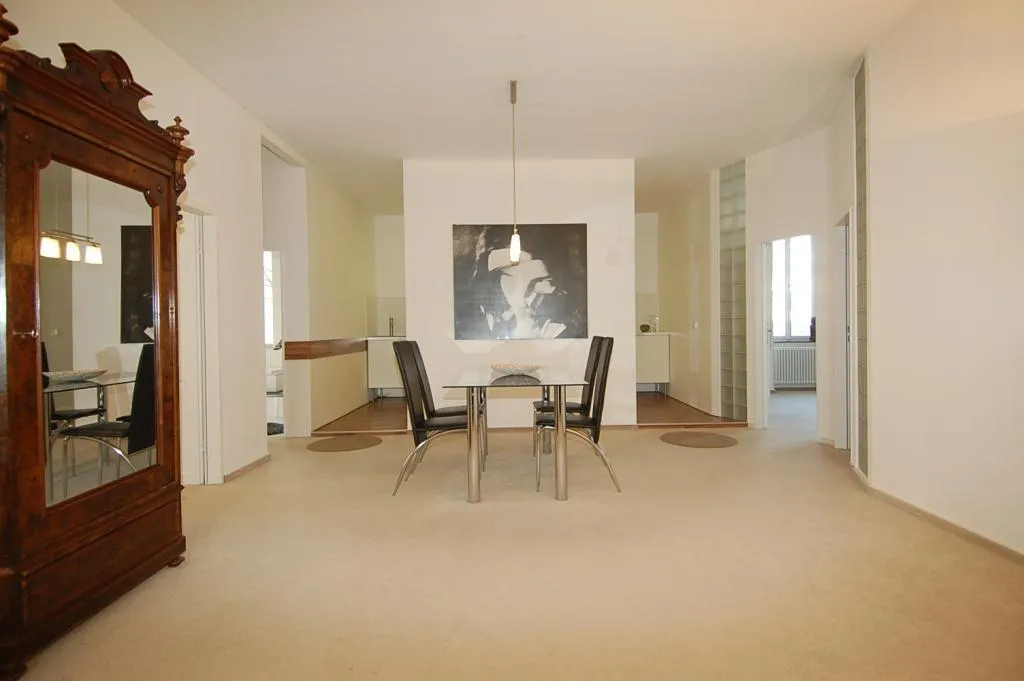 Der zentrale Punkt der Wohnung ist der ca. 40 m² große Wohn-/Essbereich mit einem Erker. Von hier sind alle Zimmer und Räume begehbar.