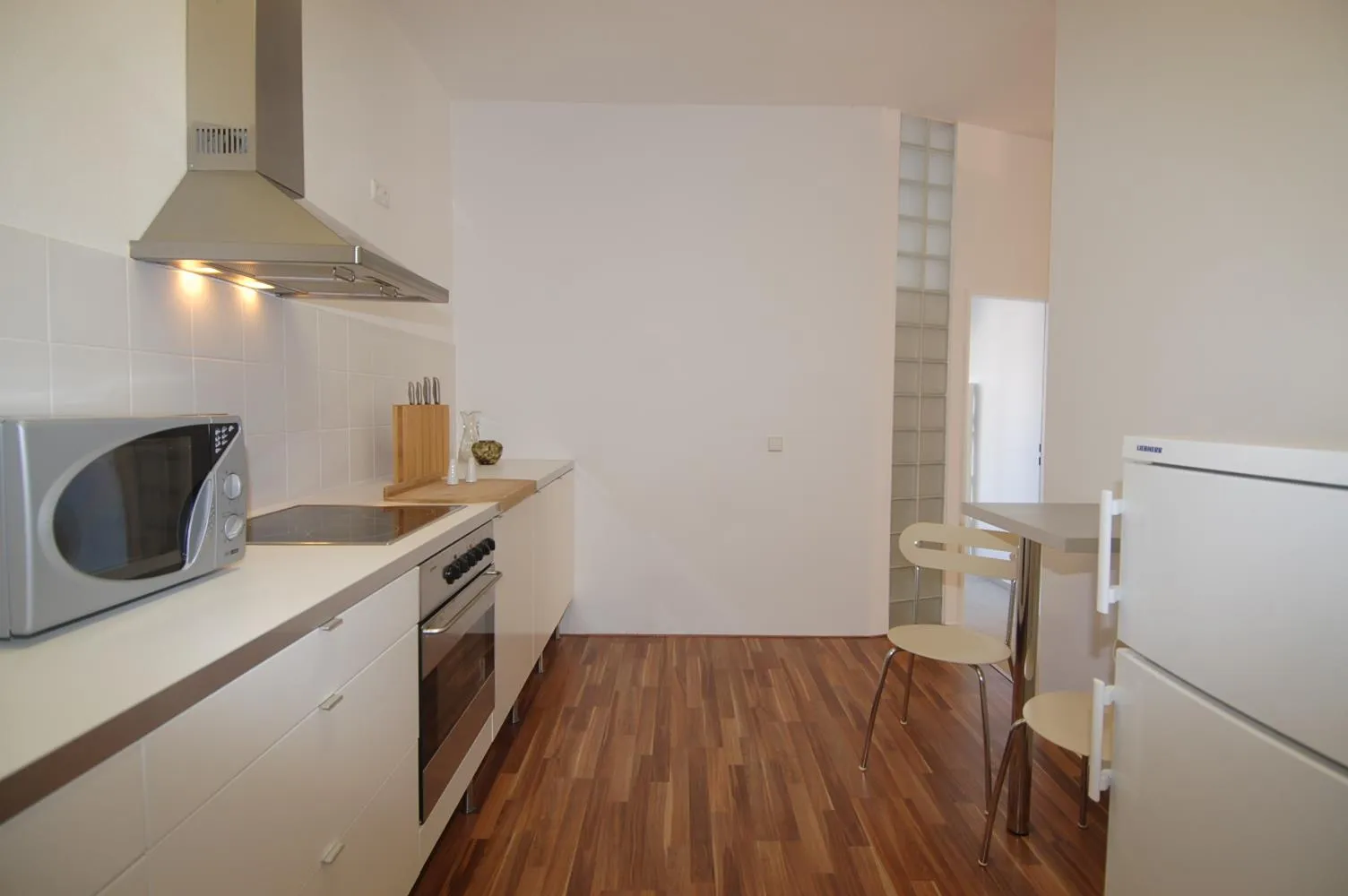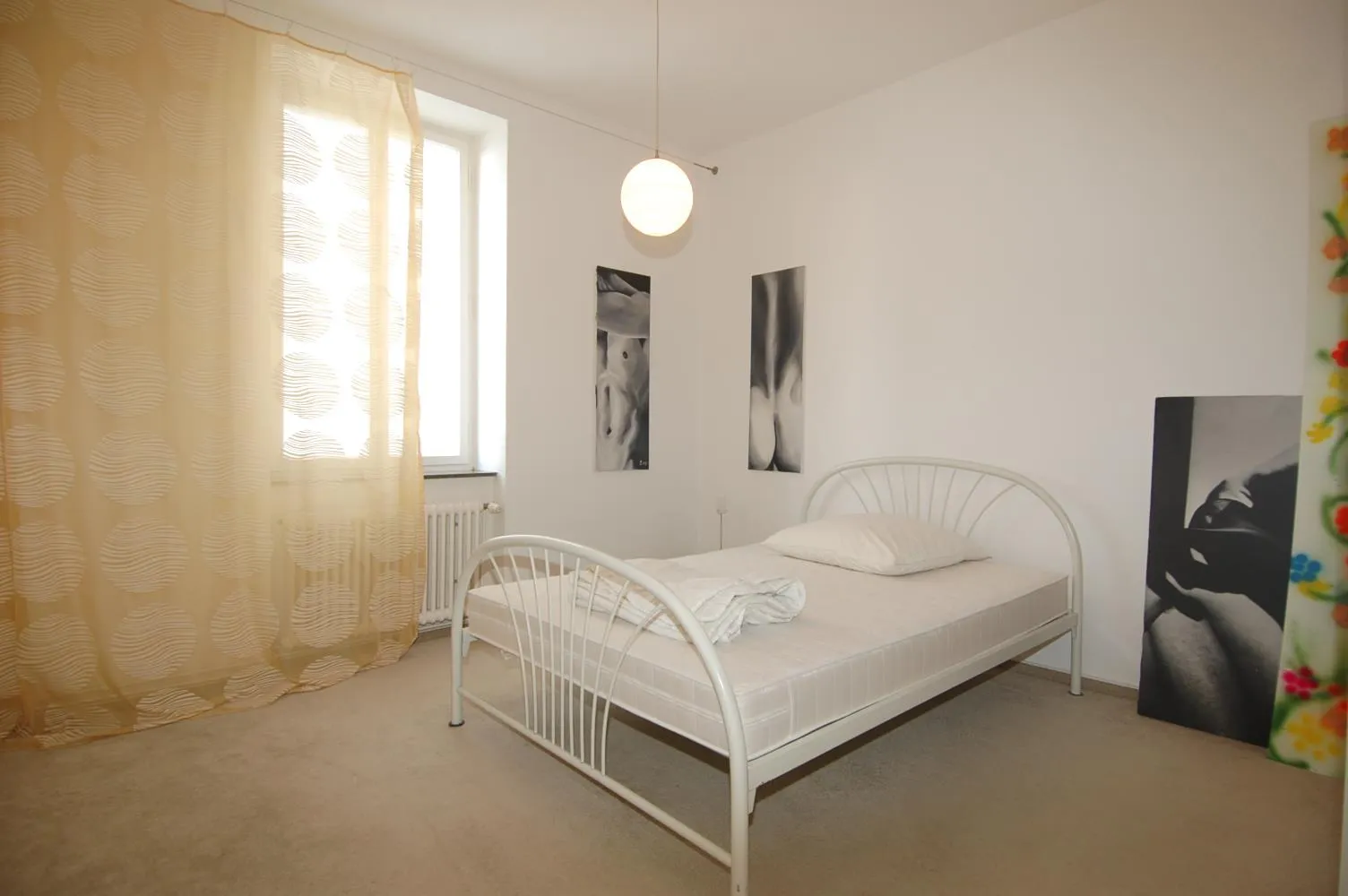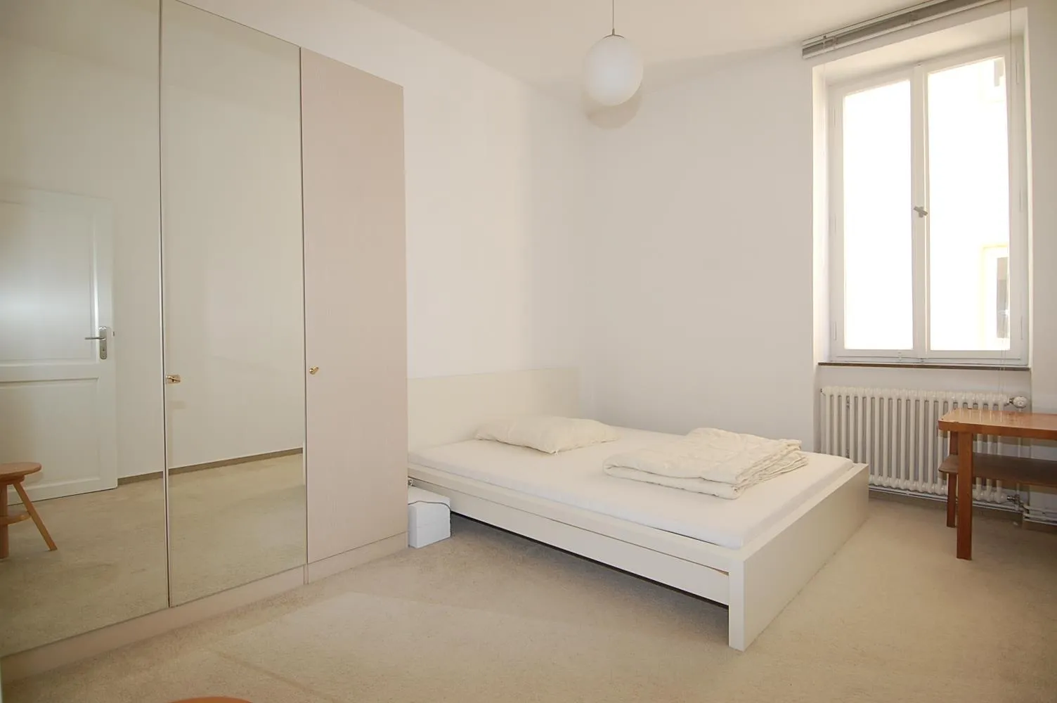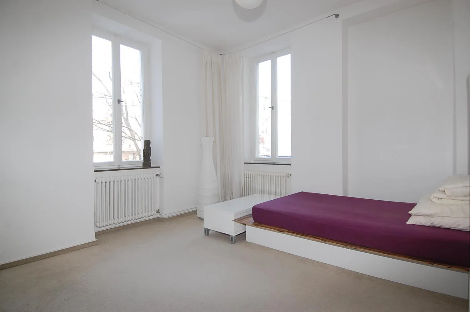 Alle Wände sind mit Raufaser tapeziert und weiß gestrichen.