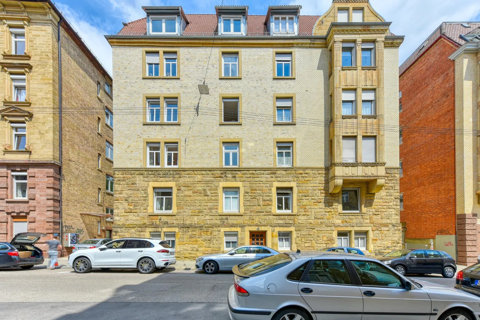 Das Haus wurde 1913 (Wiederaufbau 1947/48), massiv, 4- geschossig, komplett unterkellert sowie mit Walmdach erstellt.