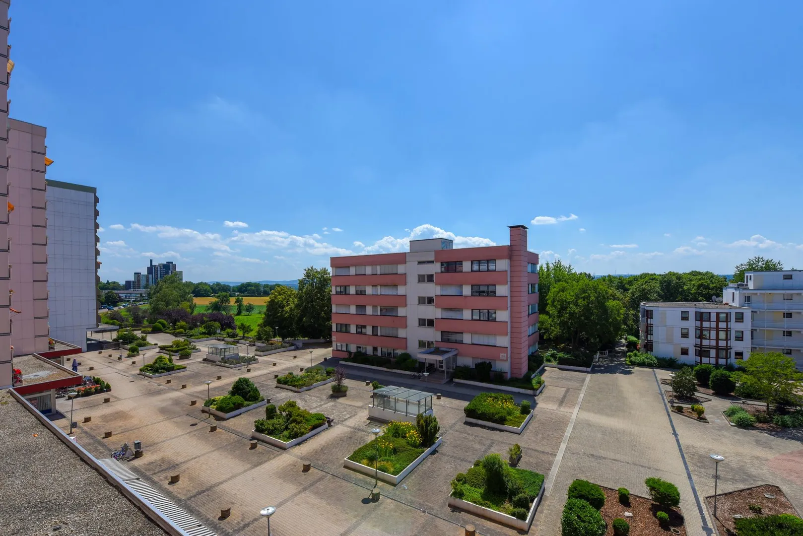 Die Hochhaus-Anlage befindet sich in bequemer Lage am Einkaufszentrum, am Hallenbad, an der Bundesstraße B27 sowie am Ortsrand von Kornwestheim Richtung Mühlhausen.