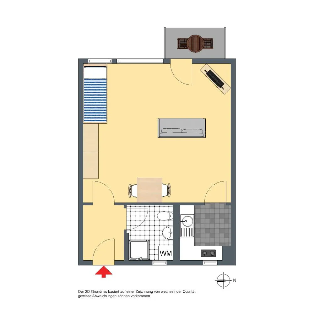 Diese modernisierte, geflegte und voll möblierte 1-Zimmer-Wohnung befindet sich im 2. Obergeschoss (Dachgeschoss ohne Schrägen) eines Mehrfamilienhauses mit 15 Wohneinheiten.